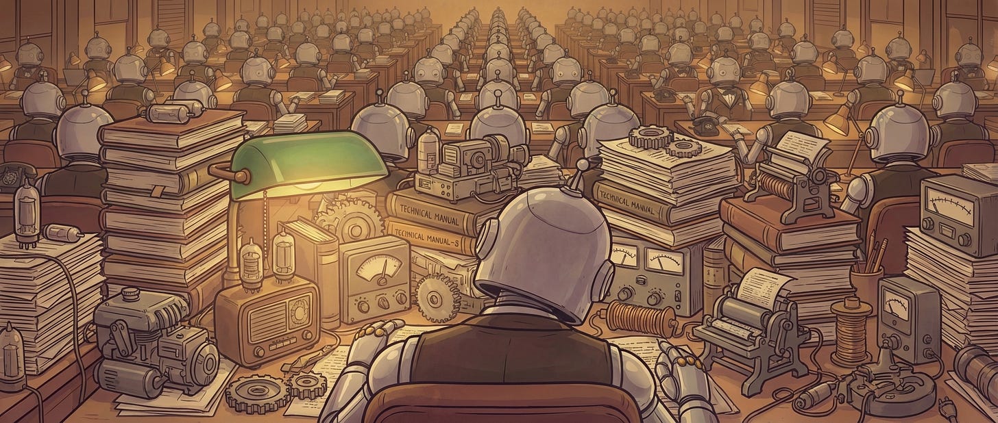 Claude has its tools. You can also teach Claude your own skills and plug in many MCP servers, just like any operator can have plenty of heavy books and tools around to handle any possible situation the client may want to resolve. If you are not careful, no-one will know which book to use and which tool to pick