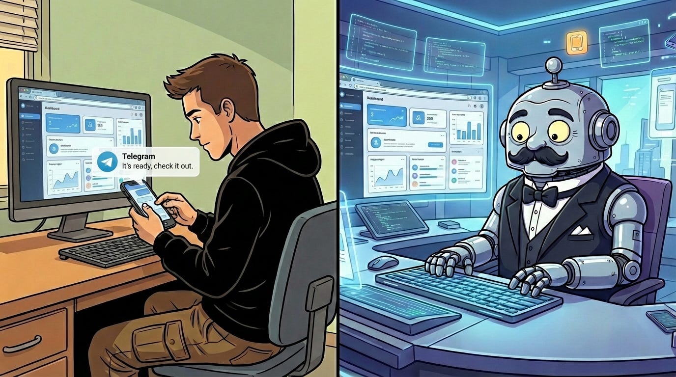 My Jean runs 24/7, currently on his cosy Hetzner server in Germany. He is always there to help me, especially for the one last prompt from the bed. Once, there were so many last one prompts that he started insisting that I should get myself some sleep. Even the whole selling point of running while I’m sleeping usually means just that Jean finishes some work 10 minutes after I finally put my phone to the charger, the ability to reach him 24/7 is a blessing. And a doom.