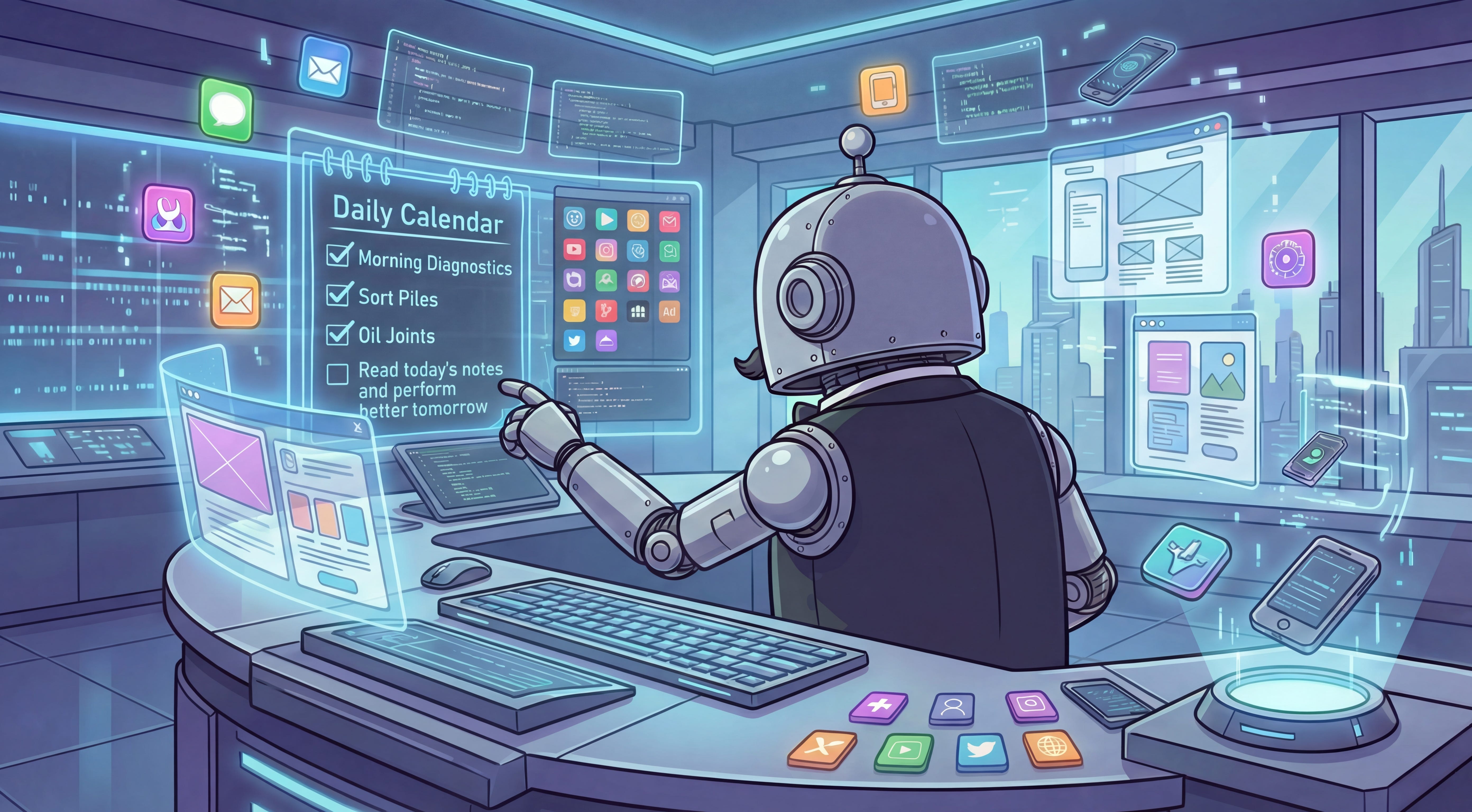 Jean has his daily schedule. In the morning, he reminds me what I have started and not finished the previous day as well as what exceptions are in my daily calendar. He reviews my GitHub notifications and checks what new in my starred repositories. Over the day, he checks my emails and calendars for anything important. He keeps an eye on the resources on his server as well as the logs from the applications. The most important task comes in the evening - check what happened today and try to learn from it.
